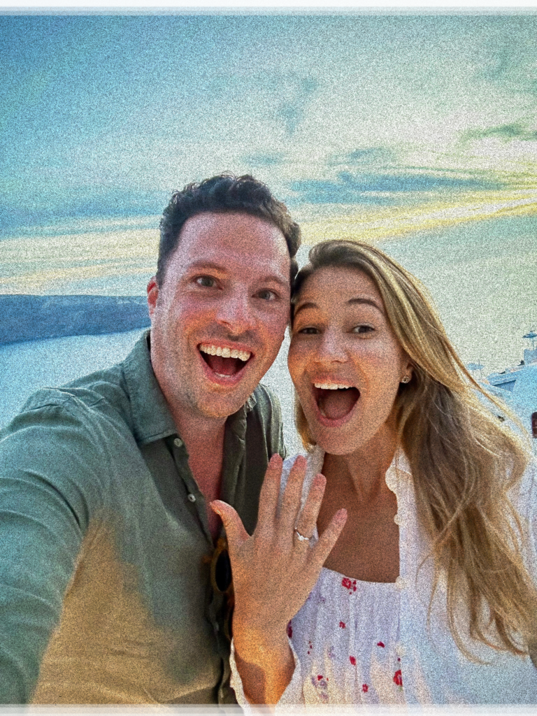 Pues entonces… ¡vamos a casarnos! Fueron ocho años de momentos de calidad, llenos de risas, debates intensos, bailes animados y más vino y comida de lo que probablemente deberíamos admitir. En algún momento, mientras perseguíamos la puesta de sol en Santorini, nos comprometimos. Y ahora, aquí estamos: planeando una boda e invitando a vosotros —nuestros seres humanos favoritos— al inicio de este próximo capítulo con nosotros.